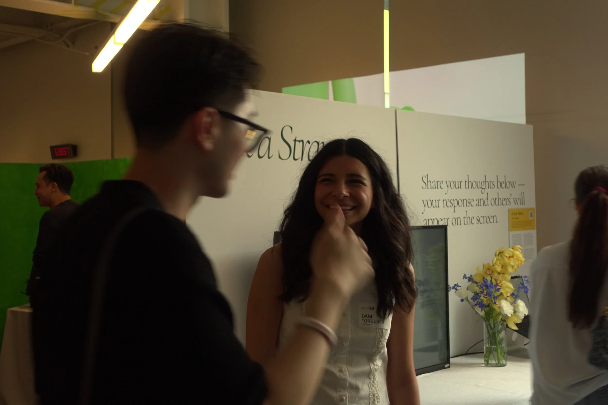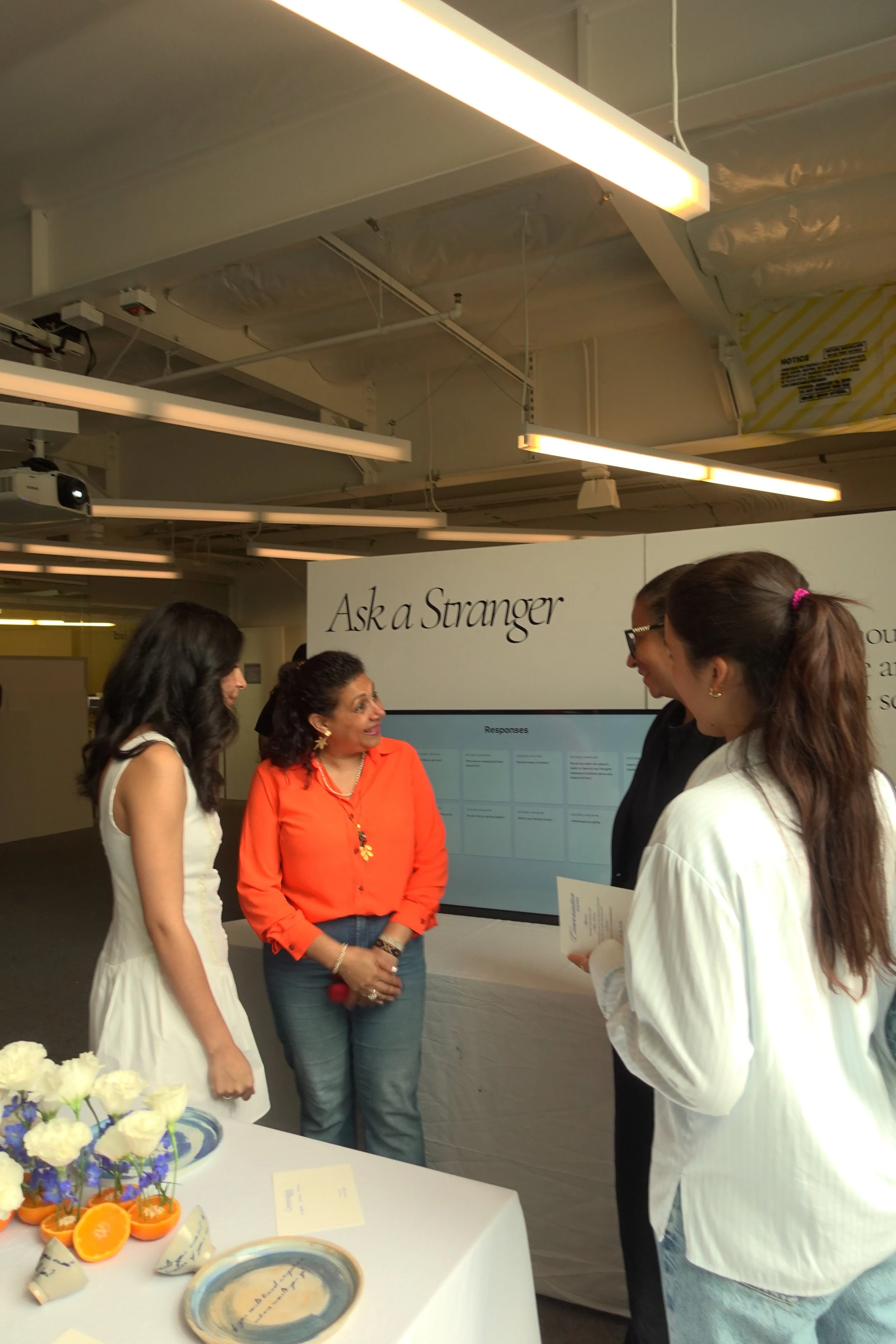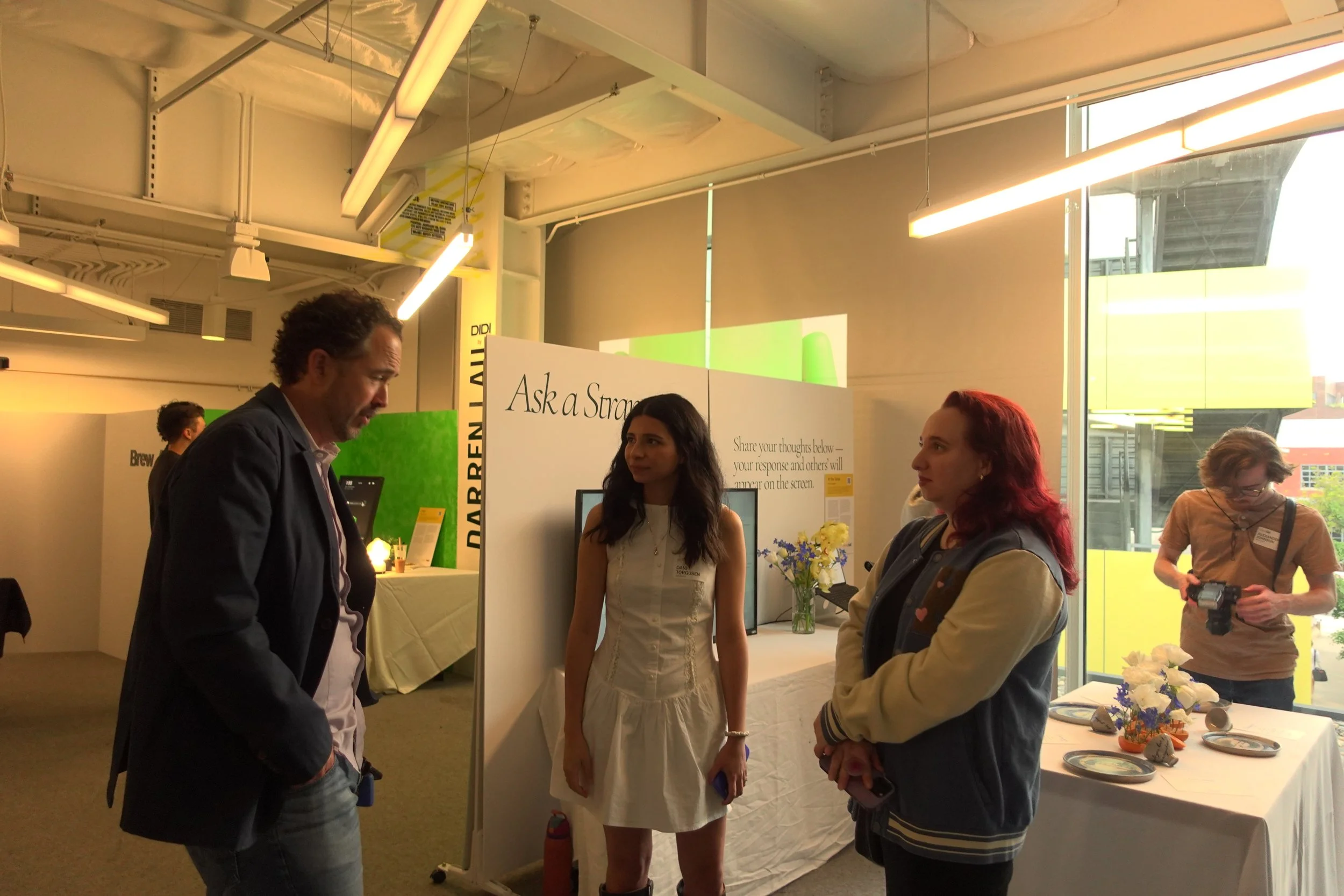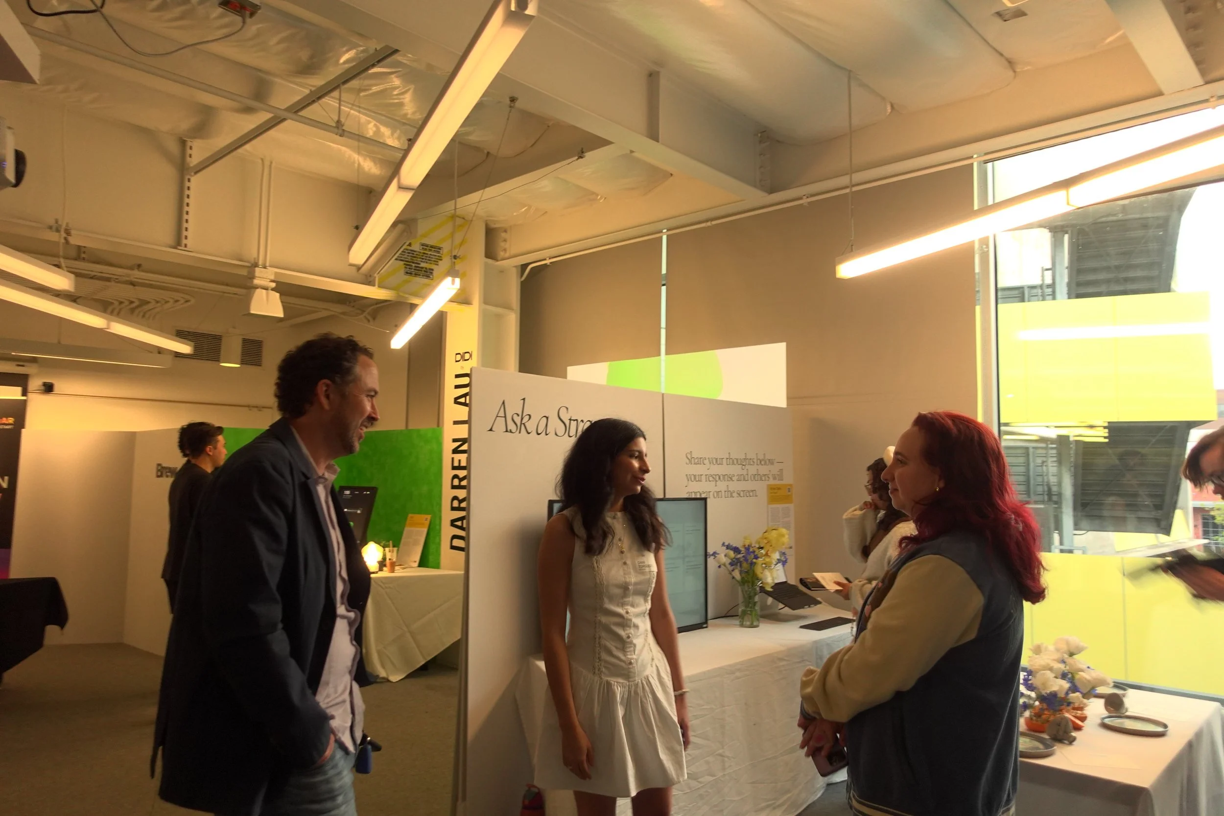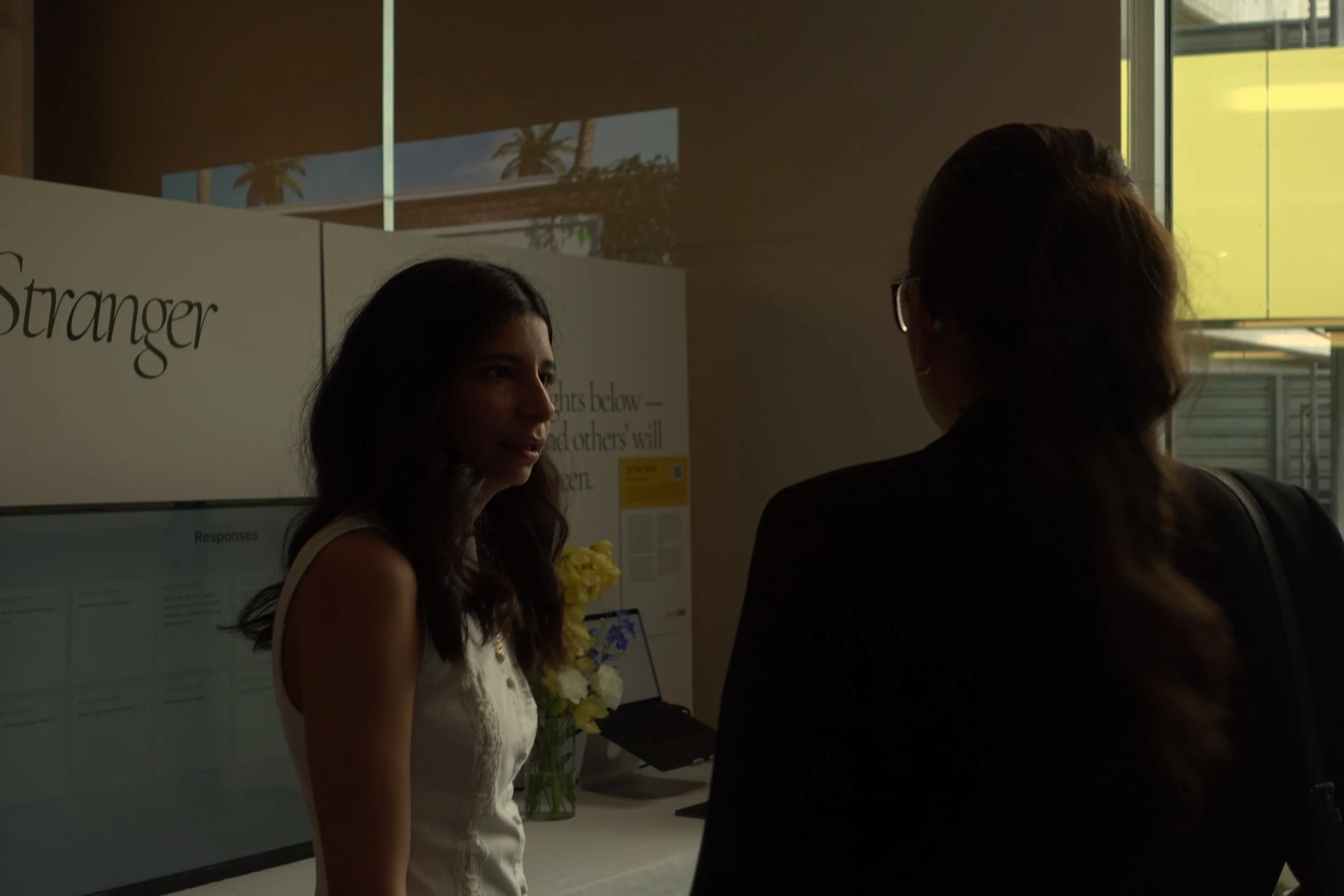 For the "Ask a Stranger" wall, I created a digital interface, allowing visitors to anonymously input answers to a singular prompt. These responses were projected in real time, creating a living collage of perspectives that echoed the project’s themes of openness and reciprocity.