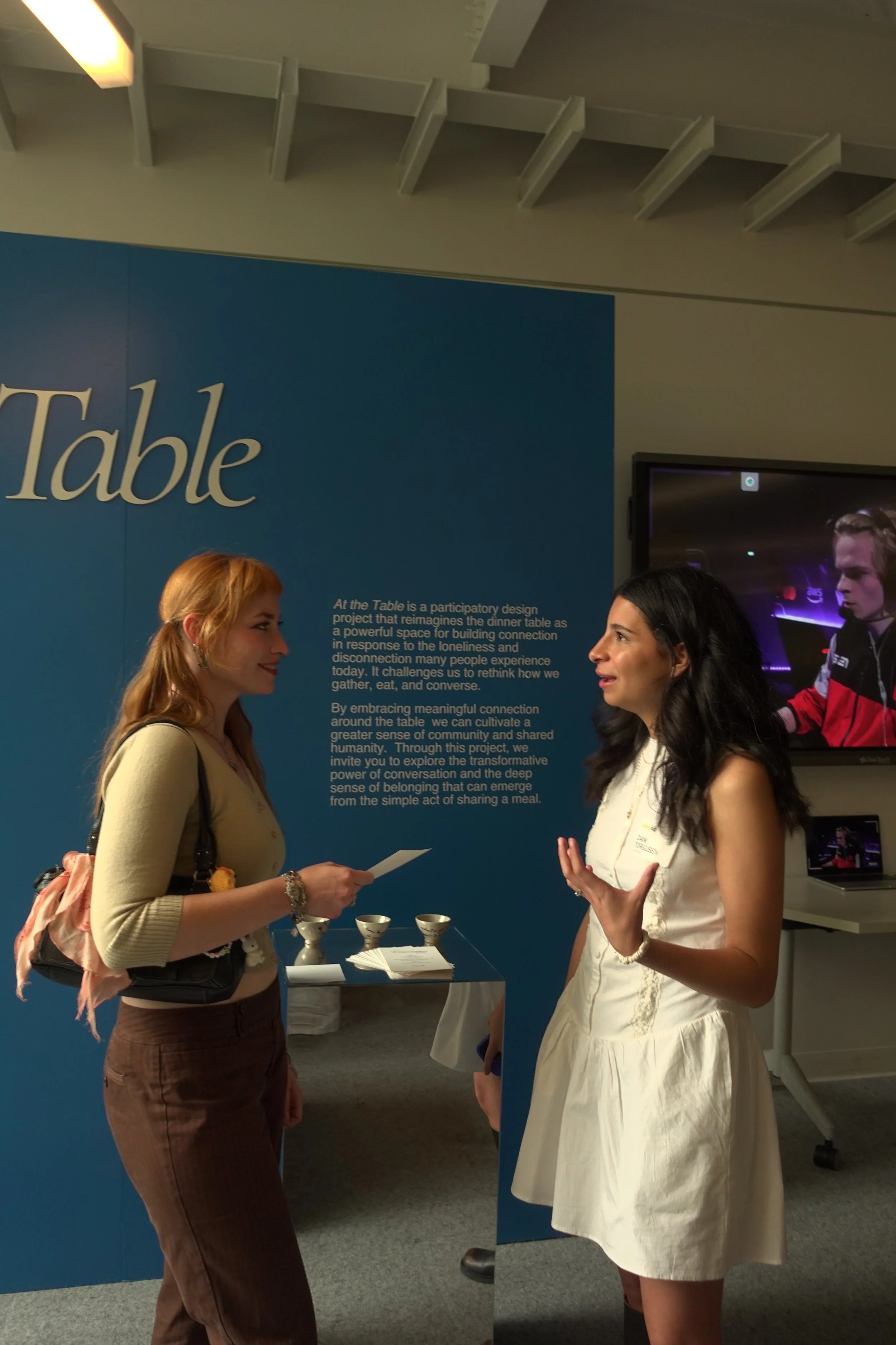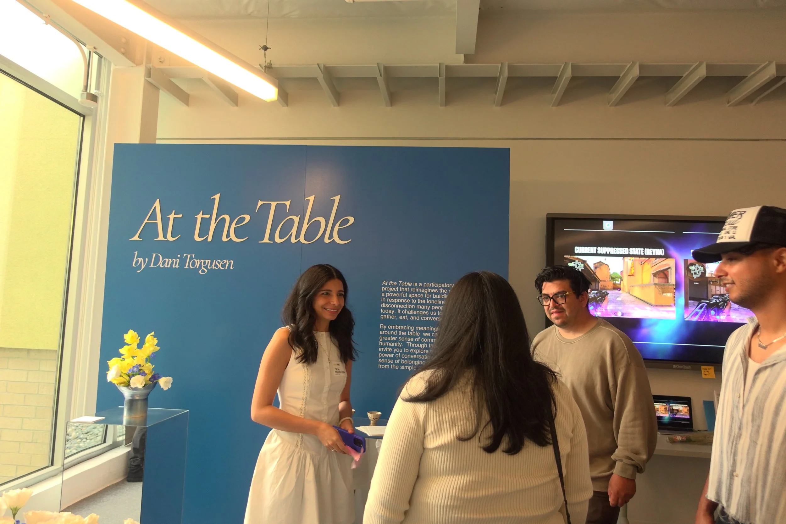 Loneliness is increasingly recognized as a public health crisis, with many people lacking spaces for authentic social connection. While dining tables have long been sites of intimacy and cultural exchange, modern life has eroded many of these rituals, leading to more isolated and transactional relationships with food and with others. The problem this project addresses is not just disconnection, but the absence of intentional spaces that nurture meaningful conversation—especially across differences. In design contexts, experiences are often created around spectacle, consumption, or function, but rarely around vulnerability or emotional intimacy. At The Table sought to counter this by creating a space where gathering becomes a practice of empathy. A key challenge was ensuring that the design would feel inclusive and emotionally safe for a diverse range of participants. The work needed to balance aesthetic beauty, usability, and emotional invitation while navigating logistical constraints, public participation, and complex interpersonal dynamics.