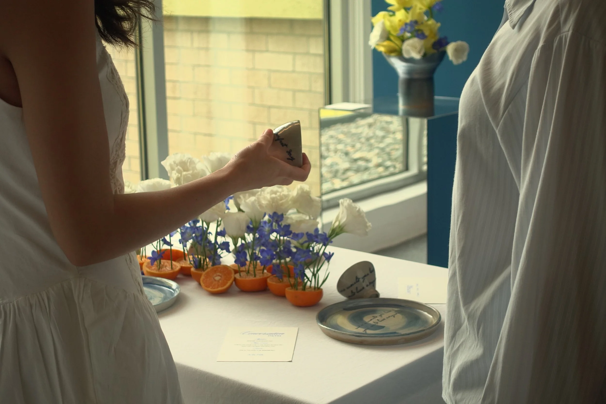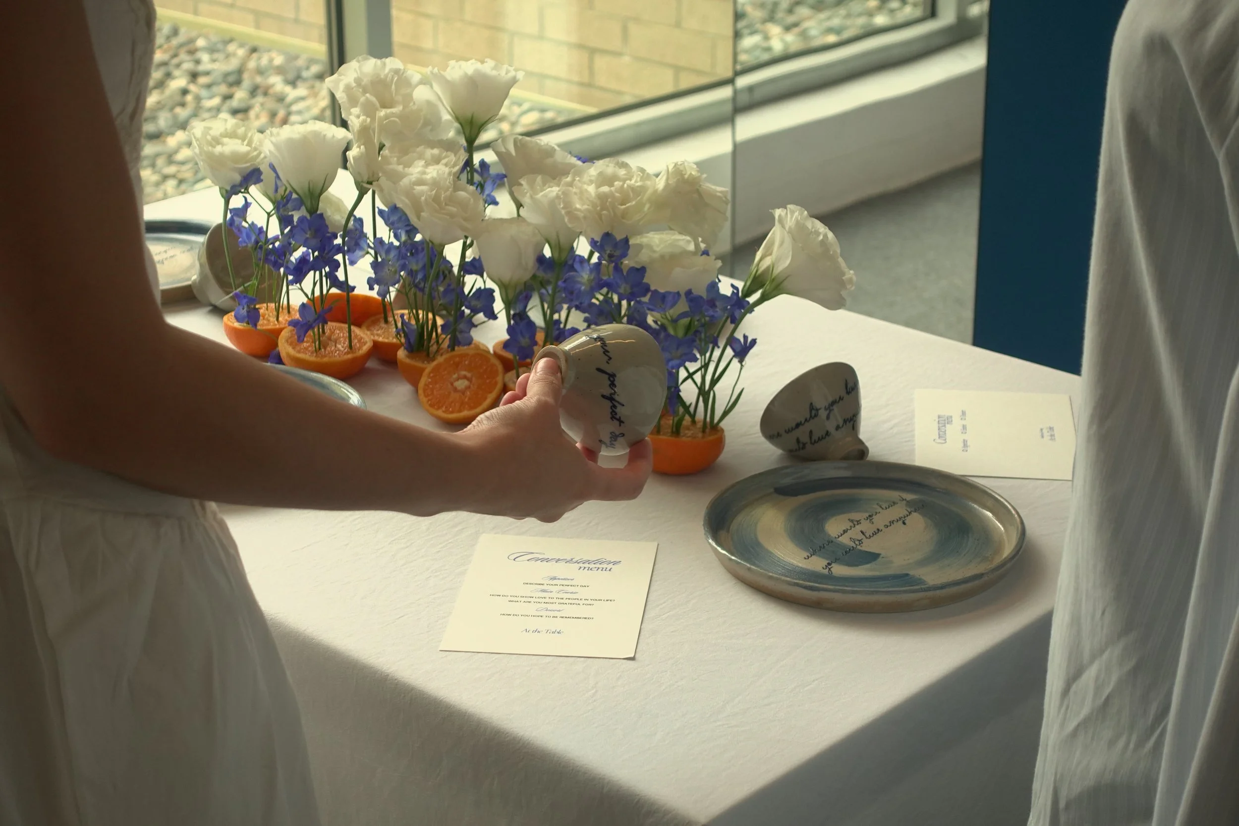 I curated a gallery stile exhibition to showcase the finished conversation ceramic pieces to invite guests into the experience.